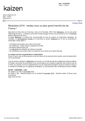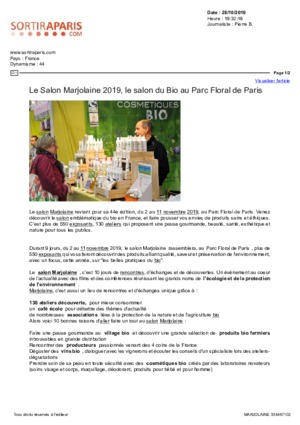 En 2019, c'est pendant 10 jours au mois de novembre que le Parc Floral de Paris a accueilli le plus grand événement de la bio et de la consommation responsable en France. Avec plus de 550 exposants, de nombreuses conférences, ateliers et animations pour petits et grands, un rendez-vous convivial et familial.